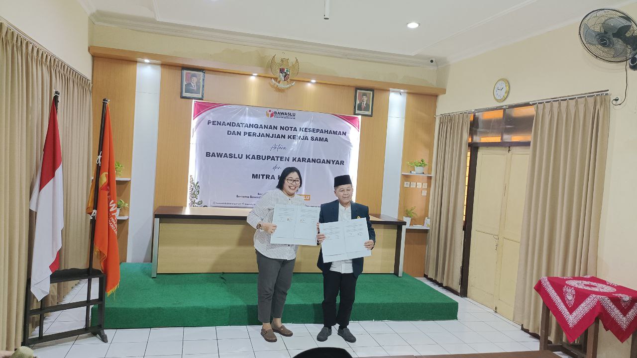Karanganyar (08/12). Bawaslu Kabupaten Karanganyar menjalin kerja sama dengan DPD LDII Kabupaten Karanganyar melalui penandatanganan Nota Kesepakatan (MoU) dan Perjanjian Kerja Sama yang digelar di Aula Kantor Bawaslu Karanganyar pada Sabtu (08/11). Kerja sama ini bertujuan memperkuat sinergi pengawasan pemilu agar berjalan jujur, adil, dan berintegritas.